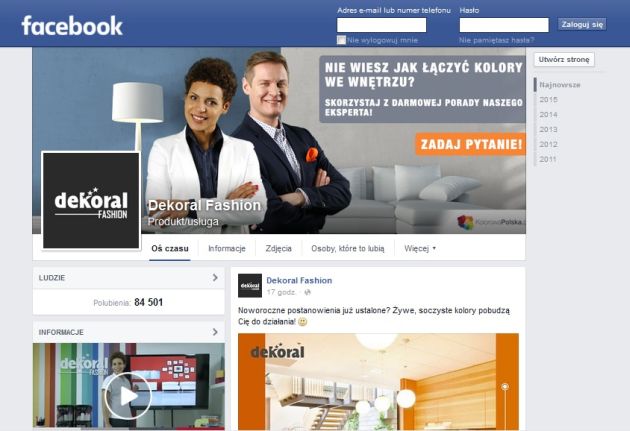 To chyba najbardziej przyjacielski, optymistyczny i wprawiający w dobry nastrój profil firmy farbiarskiej w całym Facebooku. Każdy fan może się tu poczuć ważny i doceniony, a żaden komentarz nie pozostaje bez odpowiedzi, dlatego często wywiązują się entuzjastyczne dyskusje. Twórcy strony są doskonale świadomi, że ma ona przede wszystkim intrygować, bawić i budzić pozytywne skojarzenia, niekoniecznie nawet związane z farbami, dlatego chętnie wypytują czytelników o ich zwyczaje, podsuwają niebanalne patenty na wystrój mieszkania, zadają ciekawe zagadki i zapraszają do dyskusji. Skutek? Nawet osoby niezainteresowane farbami świetnie się tu poczują.