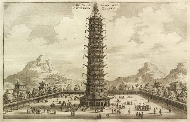 Porcelanowa Wieża w czasach świetności. Fot. Johan Nieuhof / Wikimedia Commons