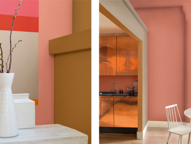 Oprócz tego ciepłego spojrzenia na świat w roku 2015 silny wpływ na kształtowanie palet kolorystycznych będą mieć barwy ziemi (od różnych odcieni gliny aż po ciepłe, słoneczne żółcie), odcienie cieliste nawiązujące do bliskości międzyludzkiej oraz sepia kojarząca się z przeszłością i tradycją. Wszystkie te tendencje łączy odcień okrzyknięty przez AkzoNobel Kolorem Roku 2015 – Miedziany Oranż. Jest ciepły, tworzy we wnętrzu przytulny nastrój, świetnie prezentuje się zarówno samodzielnie jak i w połączeniu z różem, barwami neutralnymi, bielą, innymi odcieniami pomarańczowego i tonami metalicznymi. Stanowi też doskonałe tło dla elementów drewnianych.