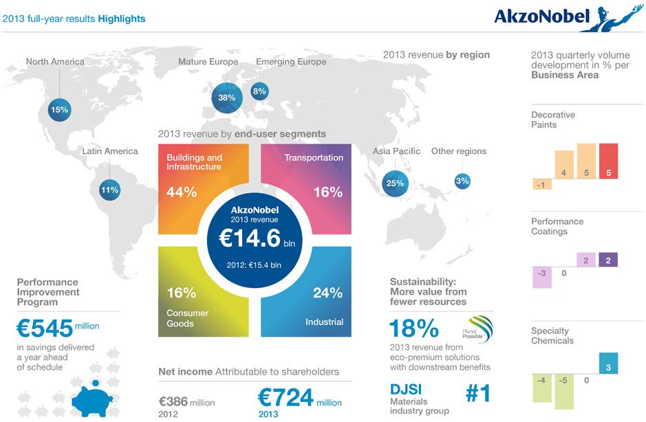 Szczegółowe wyniki finansowe AkzoNobel można znaleźć na stronie koncernu. Zachęcamy też do pobrania przygotowanego przez firmę raportu, w którym przy pomocy przejrzystych wykresów i infografik prezentuje ona swoje osiągnięcia i cele.