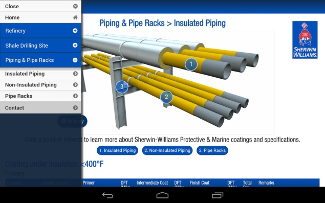 Jak zachwala Ron Knecht, dyrektor oddziału Oil & Gas North America Sherwin-Williams, dzięki aplikacji wystarczy tylko kilka wciśnięć guzika, aby ustalić jaką farbę zastosować. Nie trzeba samodzielnie przeglądać katalogu produktów i zastanawiać się, który system będzie najlepszy i dlaczego. Oil & Gas to obecnie jedyne tego typu narzędzie na rynku.