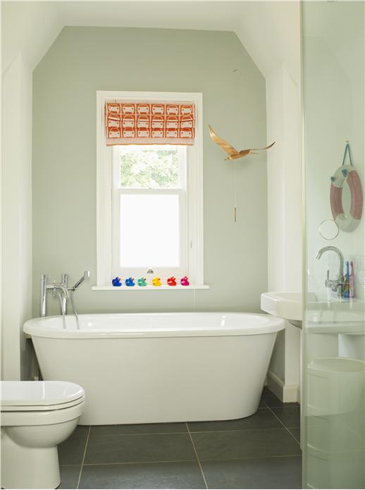 10) Nowoczesna łazienka w kolorze Down Pipe. Autor: Josie Long
