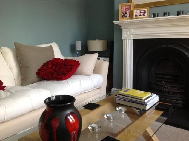 4) Kolejny pomysł na wykorzystanie koloru Oval Room Blue – ściany w tym odcieniu plus ogniście czerwone i kremowe dodatki. Autor: Kay Faulkner