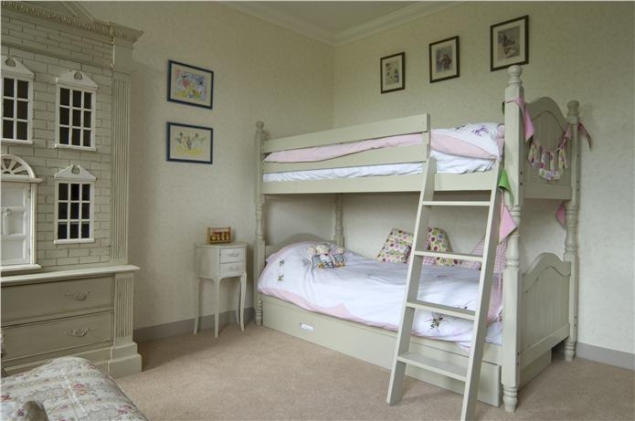 17) Pokój dziecięcy w starym stylu – na ścianie tapeta Uppark BP 519, listwy pomalowane farbą w kolorze Mouse’s Back i łóżko w odcieniu Old White. Autor: Farrow & Ball