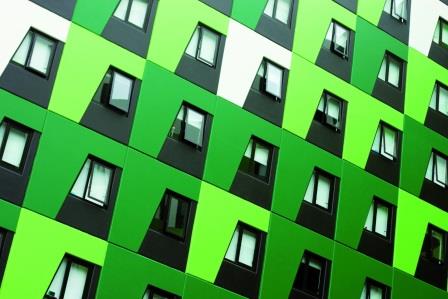 Dzięki nim jest coraz częściej wybieranym kolorem, a jego udział w architekturze zwiększył się do 8%. Najczęściej stosowany odcień to szaro-brązowy (RAL 8019). Myśląc o przyrodzie, równie często przywołujemy efektywne wykorzystanie zasobów naturalnych oraz świadomość ekologiczna. Dlatego fasady i inne elementy budynków są coraz częściej zielone – udział koloru zielonego to 3%. Udział niebieskiego wynosił 2%. Wrażenie spokoju, czystości i neutralności, jakie sprawia, może czynić go inspirującym kolorem przyszłości. Jeden z jaśniejszych kolorów, który coraz częściej widzimy na fasadach budynków, to beż – z udziałem 2%. Czerwony symbolizuje siłę i poczucie zdrowia oraz skłonność do aktywności. Te skojarzenia zwiększyły udział czerwonego w architekturze do 2%. Żółty kojarzy się z optymizmem, dynamizmem i obietnicą co zwiększyło jego udział do 0,7%. Pomarańczowy, często stosowany z uzupełniającym kolorem niebieskim, ma udział 0,2%. Fiolet po raz pierwszy pojawia się w rankingu kolorów z udziałem 0,1%.