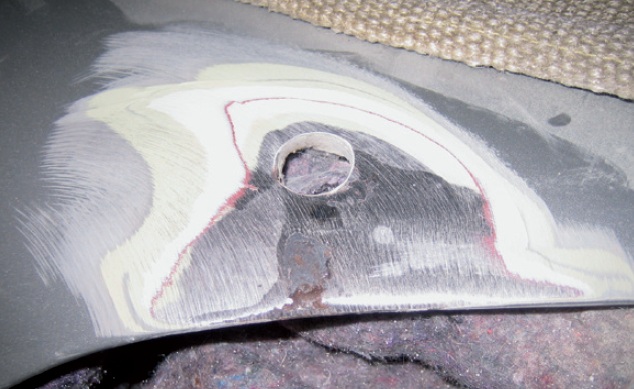 14. Szlifowanie warstw podkładu,  przeszlifowanie warstwy nieuszkodzonego lakieru nawierzchniowego.
