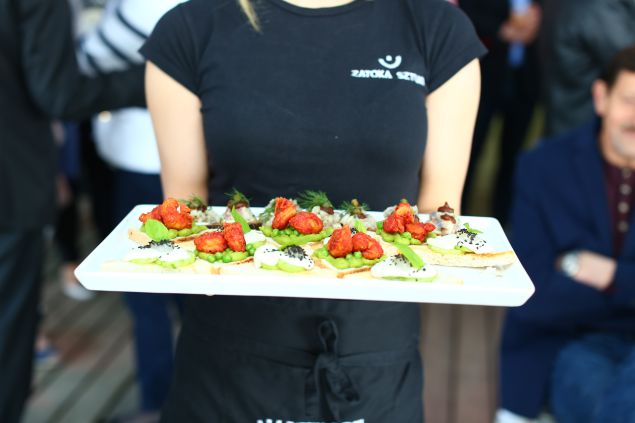 Rybami i owocami morza ugościł przybyłych Sebastian Olma, zwycięzca trzeciej edycji programu Top Chef, szef kuchni jednej z najlepszych warszawskich restauracji „Kafe Zielony Niedźwiedź”.