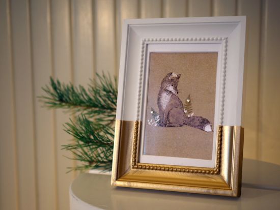 3. Pozłacana ramka na zdjęcie może stanowić ozdobę naszego mieszkania, ale również posłużyć jako prezent. Wystarczy zanurzyć do połowy białą drewnianą ramkę w perłowej – np. złotej lub srebrnej – farbie.