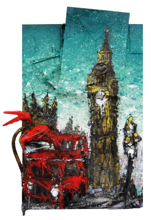 Jego obrazy to kolaże sklejone ze śmieci. Tętnią życiem, są kolorowe, dynamiczne, każdy z nich przypomina zastygłą eksplozję. Oszałamiają barwami, przytłaczają szczegółami. Jak to często bywa, jego metoda twórcza zrodziła się przypadkiem. Pewnego razu siedząc w swoim studiu i tworząc zwrócił uwagę na walające się po kątach śmieci. Postanowił je jakoś wykorzystać, na próbę je posklejał i tak powstał jego pierwszy kolaż.