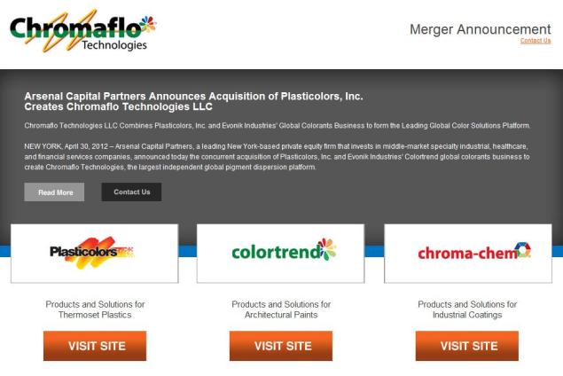 Chromaflo Technologies powstało za sprawą Arsenal Capital Partners poprzez połączenie światowych wytwórców pigmentów – Plasticolors oraz Colortrend. Firma ma swoją siedzibę w Stanach Zjednoczonych (w Ashtabula), jej zakłady produkcyjne są zaś zlokalizowane w USA, Kanadzie, Holandii oraz Australii.