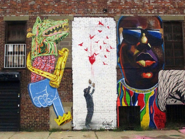 Wkrótce jednak poczuła, że płótno to dla niej za mało. Potrzebowała przestrzeni, chciała pokazać się światu. Wybrała więc murale. Zaczęła je tworzyć na ścianach Nowego Jorku, a w szczególności Brooklynu, gdzie się urodziła i wychowała. Jak mówi, miasto to ma silny wpływ na wychowanych tu artystów – jego ducha daje się łatwo wyczuć w ich pracach.