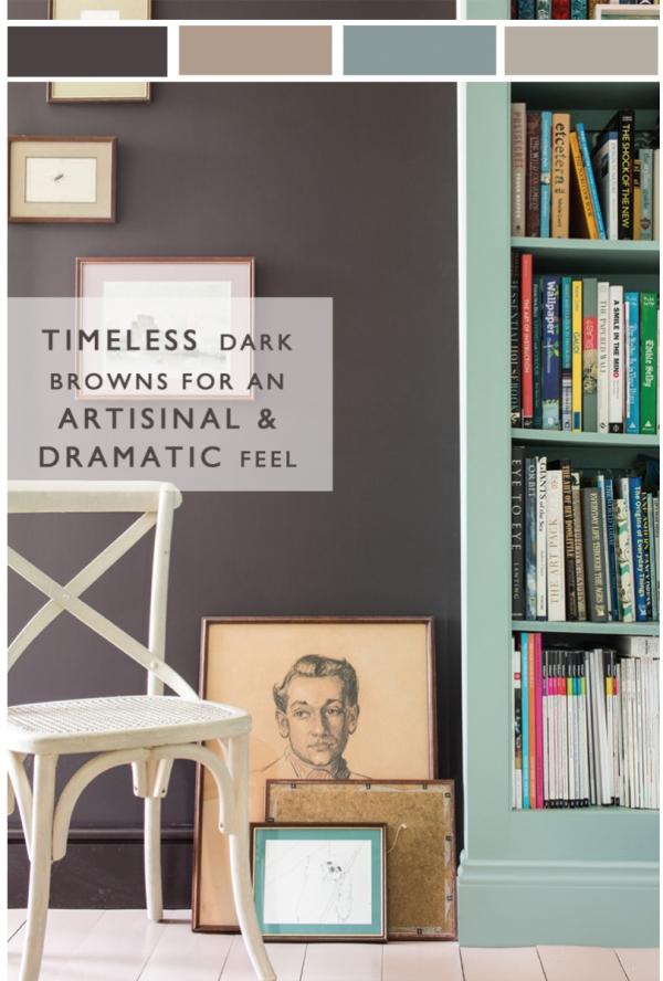 Mimo że w roku 2015 królować będą jaśniejsze, blade odcienie, ciemne kolory są najlepszą opcją gdy we wnętrzu brakuje naturalnego światła. Pomaluj fragment pokoju farbą w odcieniu Tanner’s Brown, a dzięki kontrastowi pozostałe powierzchnie nabiorą bardziej świetlistego wyglądu. Ten ziemisty brąz jest absolutnie ponadczasowy i nadaje wnętrzu lekko rzemieślniczego charakteru. Specjaliści radzą połączyć go z odcieniami Dead Salmon na stolarce, Joa’s White na suficie oraz Oval Room Blue w roli koloru akcentowego.