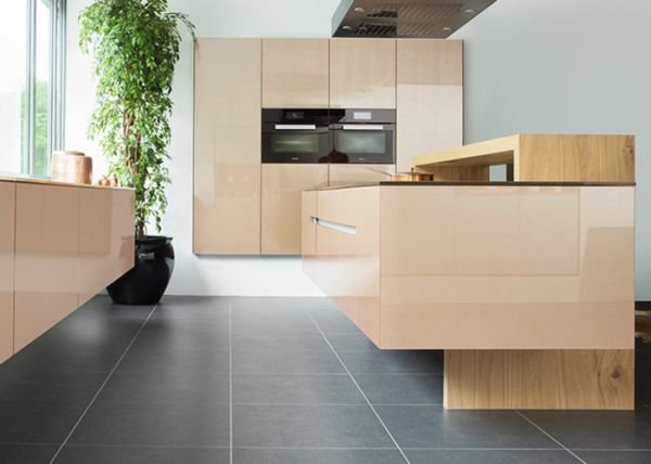 Inspirację naturą widać także w dziedzinie wykończeń. Jeśli chodzi o stopień połysku, najczęściej stosuje się głęboki mat lub naturalny mat. W połączeniu z takimi dobrze prezentuje się szkło, lakierowane z jednej strony, satynowane lub gładkie. Bardzo modnym połączeniem jest również kamień plus farba o matowych wykończeniu oraz drewno.