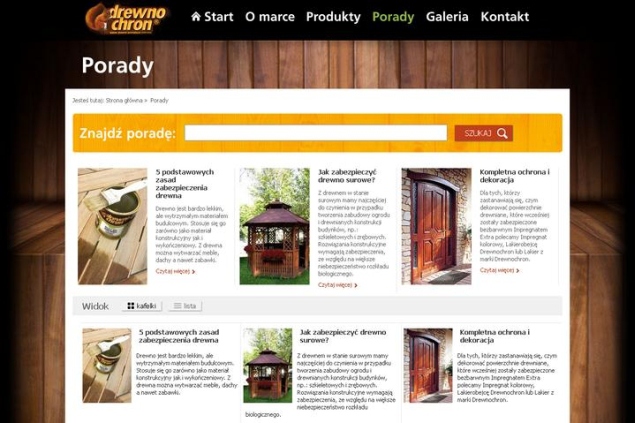 Przy okazji wprowadzono kilka dodatkowych zmian, które mają przyciągnąć internautów i ułatwić wyszukiwanie informacji na temat marki. Na stronie pojawiła się wyszukiwarka produktów oraz wyszukiwarka punktów handlowych wraz z ich adresami i numerami telefonów. Serwis wzbogacono również o dział porad dotyczących ochrony i pielęgnacji drewna, a także o galerię zdjęć aranżacyjnych – prawdziwą skarbnicę inspiracji przy urządzaniu własnego wnętrza lub ogrodu.