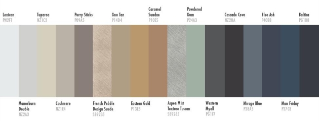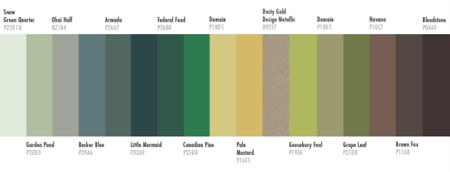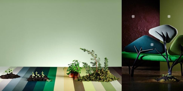 Earthwerks. Nasze wysiłki skupiają się coraz bardziej na ochronie środowiska naturalnego i wyrazem tego jest ta paleta. Zdominowana przez zieleń, uosabia nasze pragnienie życia w łączności z naturą, tworzenia rzeczy od podstaw i żywienia się owocami naszej własnej pracy. Zielenie oraz odcienie minerałów tworzą przestrzeń, w której natura pięknie współgra z nowoczesnymi elementami wystroju.