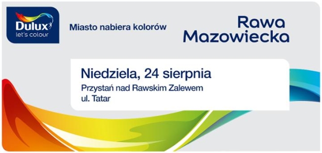 Rawa Mazowiecka to jedno z czterech miast, które zwyciężyło w głosowaniu internautów i zyskało tym samym szansę na kolorową metamorfozę dzięki ekipie Dulux Let’s Colour. Juź w najbliższą niedzielę 24 sierpnia wszyscy mieszkańcy miasta będą mogli przyłożyć rękę do wielkiego malowania w Przystani nad Rawskim Zalewem, ul. Tatar 1. Akcji jak zwykle towarzyszyć będzie mnóstwo atrakcji. Zapraszamy!