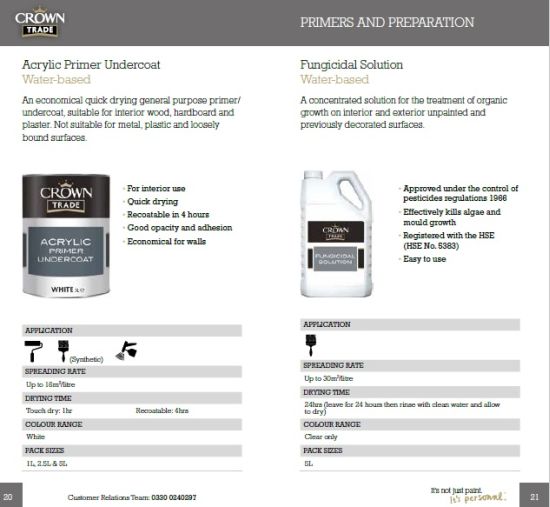 Na wypadek gdyby klient nie znalazł w broszurze poszukiwanych informacji, autorzy podają również dane kontaktowe. Doradcy Crown Paints gotowi są rozwiązać wszelkie dodatkowe problemy z aplikacją farb lub wyjaśnić wątpliwości dotyczące produktów Crown. Zachęcamy do zapoznania się z katalogiem dostępnym on-line.