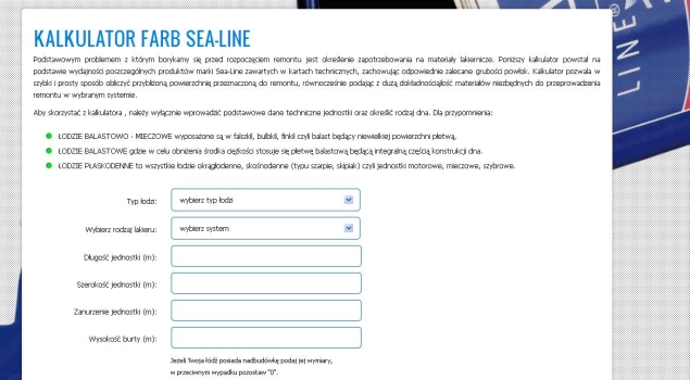 Przystępując do renowacji swojej łodzi często nie mamy pojęcia, jak dużo farby musimy przygotować. Na wszelki wypadek kupujemy więcej, a później smutne resztki zalegają w składziku. Aby tego uniknąć, marka Sea-Line opracowała dla swoich klientów specjalny kalkulator.