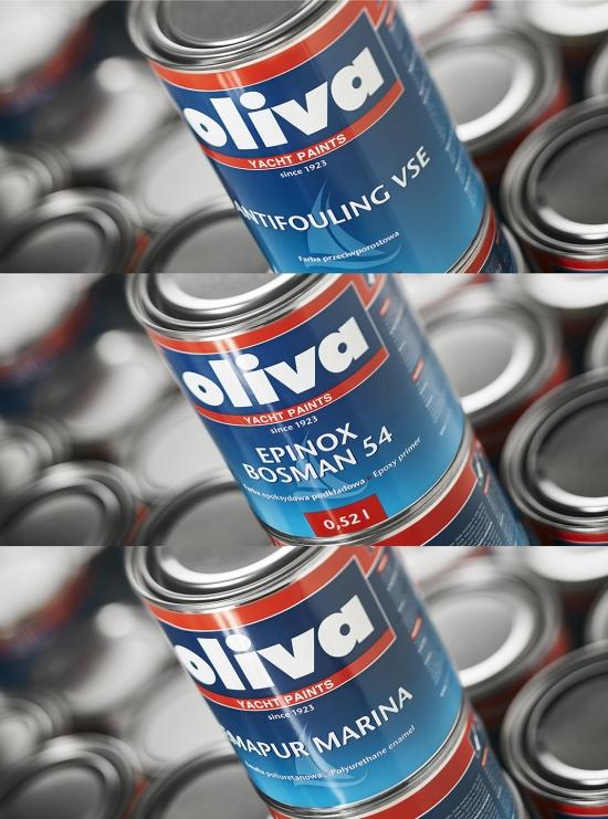 Drugą zmianą, bardziej widoczną, jest nowa szata graficzna opakowań wszystkich produktów. Mają one jednakową etykietę utrzymaną w intensywnych odcieniach koloru niebieskiego i czerwonego. Na froncie każdego opakowania znajduje się rozpoznawalny i przyciągający wzrok logotyp OLIVA YACHT PAINTS oraz nazwa konkretnego produktu. Nowa kolorystyka opakowań odzwierciedla nowoczesny i zaawansowany technologicznie charakter farb Oliva.