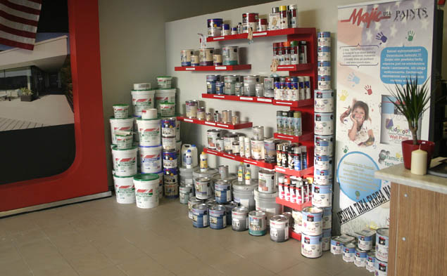 W nowo otwartym sklepie o powierzchni 60m2 można kupić wszystkie rodzaje farb z gamy oferowanej przez Majic Paints (czyli między innymi farby poliuretanowe, antykorozyjne, dekoracyjne, elewacyjne, ceramiczne i specjalne). Oprócz farb dostępne są tam również narzędzia Wooster.