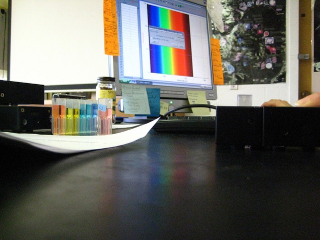 Do pomiaru barwy służy przyrząd zwany spektrofotometrem. Mierzy on ilość światła odbitego od powierzchni w zależności od długości fali – powstaje w ten sposób widmo, które jest unikatowe i właściwe tylko dla określonej kombinacji pigmentów. Na tej podstawie określa się kolor.