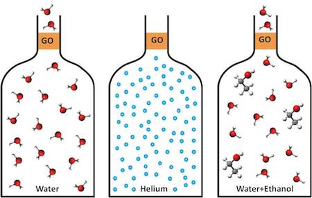 W ramach prowadzonych wcześniej badań grupa badawcza doktora Naira stwierdziła, że wielowarstwowa grafenowa powłoka jest próżnioszczelna gdy pozostaje sucha, ale pod wpływem wody lub wilgoci zaczyna zachowywać się jak sito, przepuszczając drobne cząsteczki na drugą stronę. Dzieje się tak, ponieważ drobne płatki z których zbudowana jest powłoka są ułożone jeden na drugim w sposób losowy, a pomiędzy nimi tworzą się nanokapilary. Do drobnych kanalików szybko dostaje się woda, a jej cząsteczki mogą za sobą pociągnąć inne niewielkie molekuły. Było to odkrycie o wielkiej wadze dla systemów oczyszczania wody. Ale nie tylko.