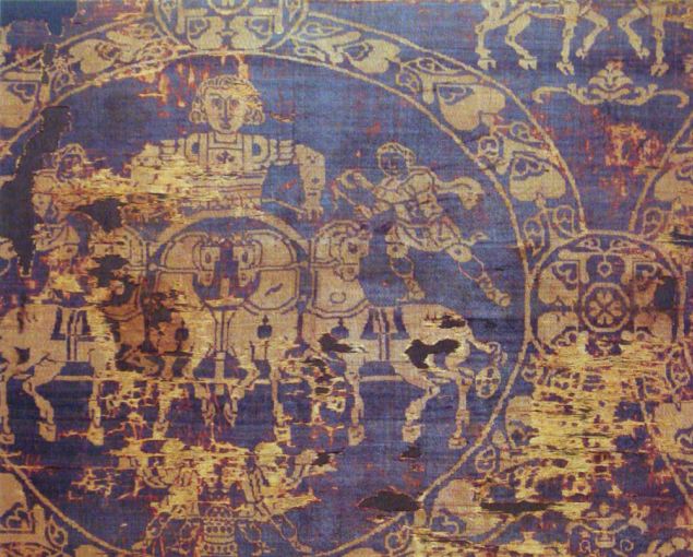 Fragment całunu Karola Wielkiego, powstałego na początku IX w. – przykład użycia purpury tyryjskiej. Fot. Wikimedia Commons