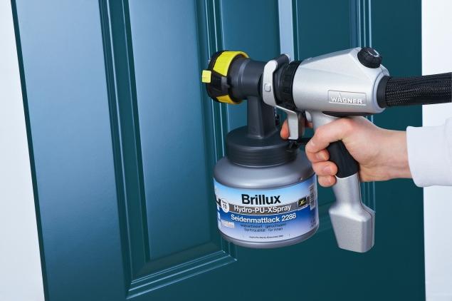 Technologia XVLP jest również wygodna i szybka. Oszczędność czasu, jaką oferuje, Brillux ilustruje przykładem: załóżmy, że zamierzamy pomalować z obu stron drzwi. W przypadku użycia pędzla lub wałka potrzebujemy ok. 2 minut na przygotowanie podłoża i 45 minut na nanoszenie farby – to w sumie 47 minut. Jeżeli zaś zastosujemy Hydro-PU XSpray z technologią XVLP, przygotowanie zajmie nam 4, a malowanie 8 minut, więc cała operacja potrwa zaledwie 12 minut. To o ponad pół godziny mniej!
