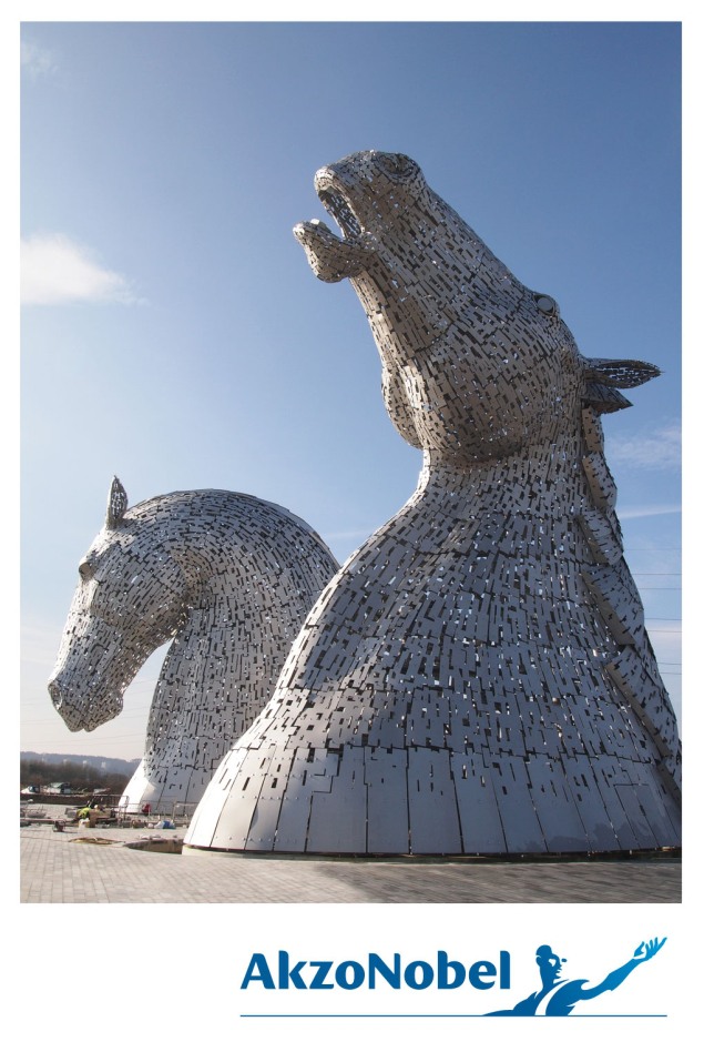 Te ogromne końskie głowy to instalacja artystyczna The Kelpies w parku Helix w Szkocji. Przed korozją i niszczącym wpływem środowiska chroni ją farba Interfine 797 od AkzoNobel.