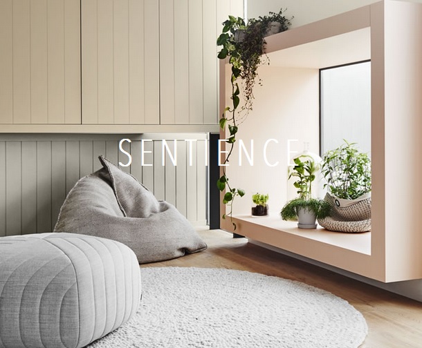Sentience tworzy przeciwwagę dla zimnego blasku ekranów i wyświetlaczy, w które wpatrujemy się przez większość dnia. Jest to zestaw złożony z ciepłych, cielistych odcieni oraz barwy i motywów roślinne. To również wystrój bogaty w tekstury, które stymulują nasze zmysły, oraz ciekawe w dotyku i zapachu materiały.