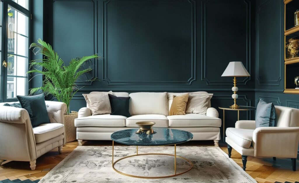 - W duecie: połącz Kolor Stulecia Dunn-Edwards z ciepłym odcieniem neutralnym, jak kremowy, szarobrązowy czy beżowy, lub z kontrastującą opcją kolorystyczną – na przykład terracotta, pomarańczowym lub głębokim burgundem.