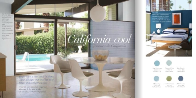 W palecie California cool jest również dużo światła, jednak całość sprawia wrażenie świeżości i chłodu. Jest to zasługa lazurowych błękitów przywodzących na myśl chłodny basen.