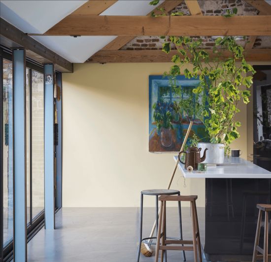 Ładnie prezentuje się w połączeniu z niebieskim Oval Room Blue i lekkim Setting Plaster, tworząc pogodny wystrój à la domy z przełomu ubiegłego wieku. Idealnym dopełnieniem tego połączenia, jako neutralny odcień na sufit, będzie Wimborne White. Powstaje w ten sposób wystrój w stylu lekko eklektycznym, ale przyjazny, zachęcający do kreatywnego spędzania czasu.