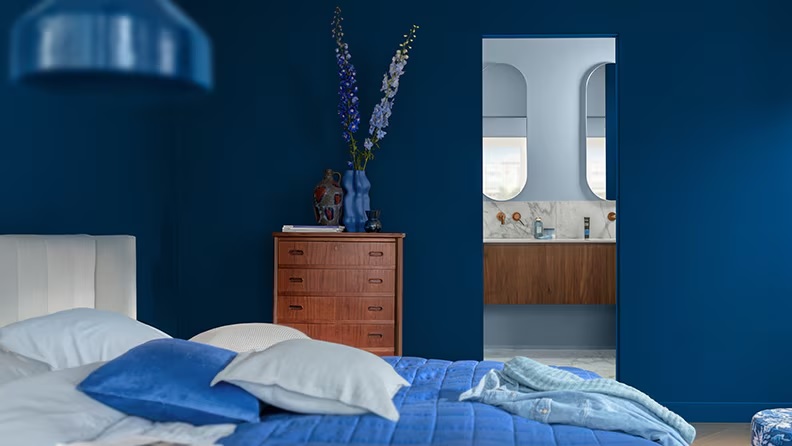 Tworząc paletę dla sypialni, specjaliści AkzoNobel inspirowali się słynną Gwiaździstą nocą Vincenta van Gogha. Tu odcienie niebieskiego pasują wręcz idealnie, a wyrazisty Marynistyczny Granat™ w połączeniu jaśniejszymi błękitami wprawi natychmiast w nastrój relaksu.