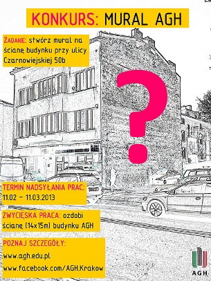 Akademia Górniczo-Hutnicza w Krakowie ogłosiła konkurs „Mural AGH” na projekt i wykonanie malowidła, które ma powstać na nowo zakupionym przez uczelnię budynku. Główna nagroda to 3 tysiące złotych.