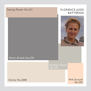 Calming Powder Room – odprężający, bardzo dziewczęcy zestaw. Pomalowane farbą w odcieniu Mole’s Breath ściany stworzą nastrój zapadającego zmierzchu, podczas gdy przydymiony Setting Plaster przyda wnętrzu różanego blasku. Do tego szary Purbeck Stone na drzwiach i framugach, pastelowy Dimity na podłodze, odrobina świeżego Pink Ground i kojącego Pale Powder – i voilà!