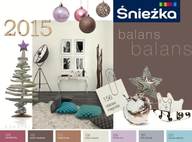Idealnym uzupełnieniem wnętrz łączących styl klasyczny z motywami eko będą srebrne ozdoby. Pięknie podkreślą one złamaną biel ścian (Stalowe Magnolie) oraz dekoracyjne elementy w odcieniach brązu (Orzech Macadamia, Rozkoszny Brąz), wiśni (Nuta Tajemnicy), błękitu (Lazurowe Wybrzeże) czy wrzosu (Królowa Nocy). Specjaliści proponują także własnoręczne wykonanie ozdobnej girlandy na drzwi – wystarczą gałęzie świerku, szyszki, orzechy włoskie, liliowa wstążka oraz odrobina szybkoschnącego lakieru Śnieżka Multispray w kolorze kremowym. Można w ten sposób wyczarować także mniejsze elementy, na przykład wianuszki do świec.