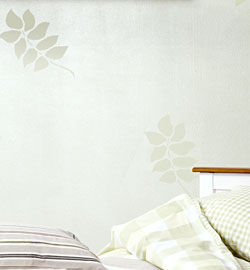 Zakupiony szablon przyklejamy do ściany pomalowanej już wcześniej ścienną farbą dekoracyjną. Jeśli była malowana dawno temu, sprawdzamy, czy nie jest zakurzona i ewentualnie przecieramy ją szmatką; jeśli niedawno – musimy upewnić się, że jest już całkowicie sucha.