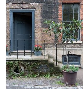 Elewacja w kolorze Light Gray No.17, zdobienia: Lime White No.1, drzwi w kolorze London Clay No.244. Fot. Farrow & Ball