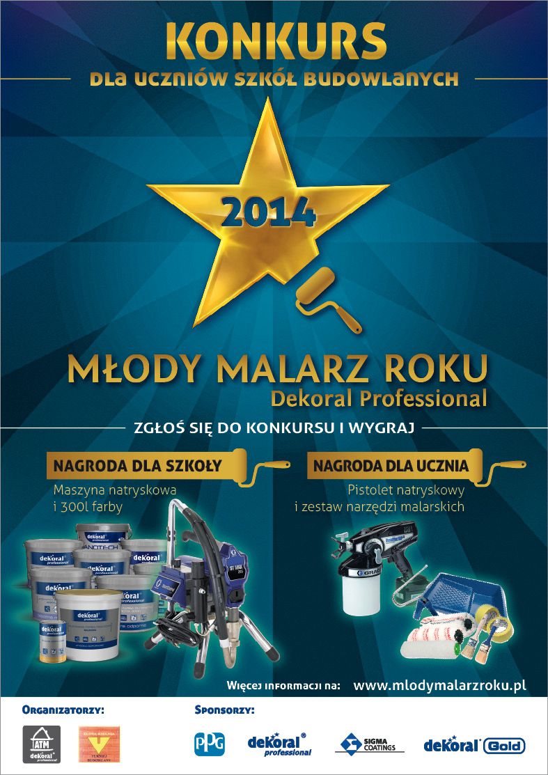 Uczniowie szkół budowlanych z całej Polski staną w szranki w zawodach Młody Malarz Roku Dekoral Professional 2014. Organizowany po raz kolejny konkurs odbywa się we współpracy z Turniejem Budowlanym Złota Kielnia.