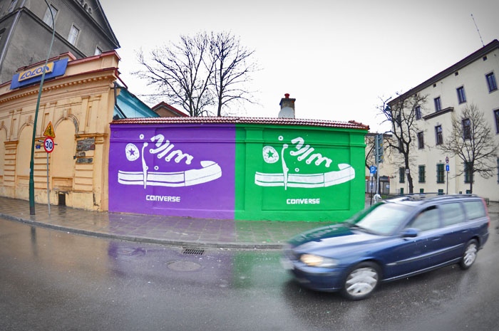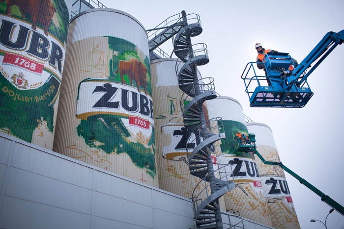 B.L.: To zależy od malowanej powierzchni. Używamy zarówno farb akrylowych jak i rozpuszczalnikowych farb w aerozolu. Firmy produkujące farby udzielają nam porad technologicznych, pomagają dobrać rodzaj farby do konkretnej powierzchni, i my ich zdanie respektujemy. Pracujemy w tej kwestii z profesjonalistami.