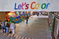 B.L.: W pierwszym kroku szkic murala naniesiony zostaje na powierzchnię. Następnie duże powierzchnie wypełnione zostają podstawowymi kolorami. Kolejne etapy to wykonanie przejść kolorów, malowanie detali oraz konturów