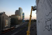 B.L.: Kilka godzin więcej poświęcone należytemu przygotowaniu się do malowania to mniej godzin spędzonych przy ścianie. Dobre przygotowanie powierzchni – zagruntowanie, oczyszczenie, warstwa podkładowa sprawiają, że efekt końcowy jest bardziej zadowalający. Do malowania murali potrzeba dużo cierpliwości. Jeśli ma być to większy projekt, polecam również zweryfikować swoje lęki przed pracą na wysokościach przed wjazdem na 25 metrów w koszu podnośnika.