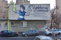 Bartek Leśniewski: Są na to różne sposoby. Wielu artystów przenosi projekt ręcznie – z kartki. Oglądają ścianę z dużej odległości i widzą, jaką skalę przyjąć. Jest to tym prostsze, im więcej w projekcie jest małych elementów. Można również przenieść projekt przy pomocy tzw. siatki. Metoda ta polega na podzieleniu projektu na mniejsze części przez wyznaczenie poziomych i pionowych linii. Następnie należy naszkicować takie same linie na ścianie i przenosić obraz fragmentami w odpowiadające prostokąty. Kolejny sposób to wykorzystanie projektora, ale dokładne ustawienie takiego obrazu wymaga znajomości programów graficznych. Inna sprawa to malowanie z szablonów; przygotowanie dobrego szablonu zajmuje sporo czasu. To trochę jak z nauką jazdy na nartach – im dłużej jeździsz, tym robisz to lepiej i swobodniej. Determinacja, ciągła nauka i doskonalenie to podstawa sukcesu naszej firmy.