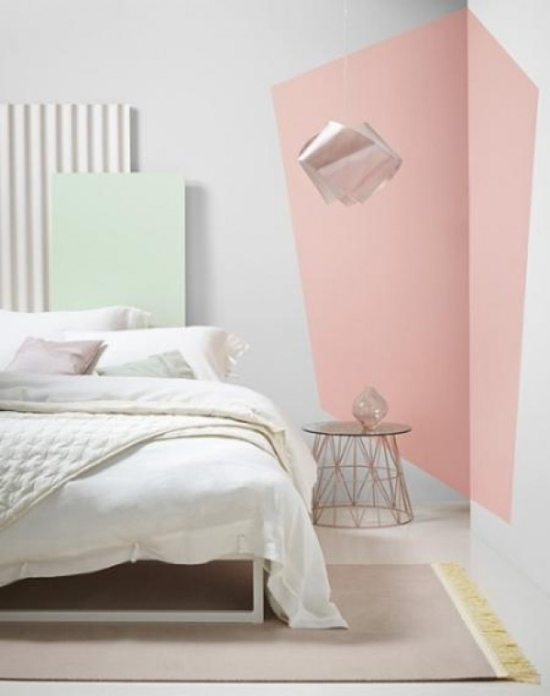Subtelny efekt ombre króluje dziś na tkaninach, ale powoli opanowuje również ściany. To dziecinnie proste – rysujesz linię, wypełniasz powierzchnię po jednej jej stronie jednym kolorem, po drugiej – innym, a następnie rozcierasz suchym pędzlem albo gąbką. Dla oszałamiającego efektu wybierz dwa zupełnie różne kolory. Więcej na ten temat w naszym tekście.