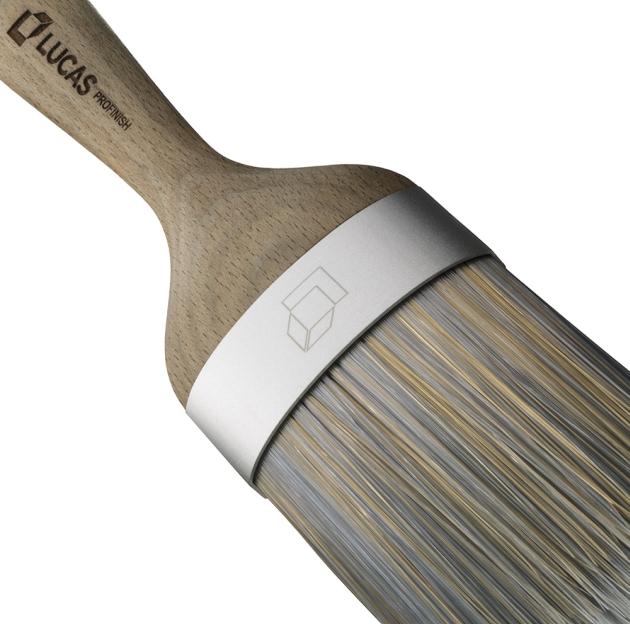 Nie powinno dziwić namaszczenie, z jakim Lucas prezentuje proces wytwarzania pędzla. Każdy etap jest tu ważny, aby otrzymać w efekcie niezawodne, doskonale leżące w dłoni i świetnie radzące sobie z farbą narzędzie. Dla przykładu – pędzel ProFinish posiada uchwyt z drewna bukowego powstający wskutek cięcia laserowego CNC, a następnie szlifowania oraz nanoszenia bejcy z tanią, siarczanu żelaza i oleju duńskiego. Łatwe i równomierne rozprowadzenie farby gwarantuje syntetyczne włosie Chinex DuPont.