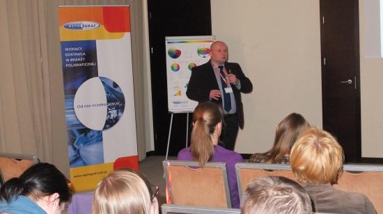 Spotkanie otworzył i poprowadził Dyrektor Działu Colour Solutions firmy Reprograf – Daniel Cedzyński, który wygłosił również prezentację „Recepturowanie farb i tynków – jak zbudować właściwą bazę danych”. Kolejni prelegenci – przedstawiciele firmy X-Rite: Lucie Matuskova, Jan Ungrad omówili nowatorskie rozwiązania techniczne, które zastosowano w najnowszych systemach pomiarowych X-Rite. Ingrid Holacsek z firmy X-Rite Pantone przedstawiła sposoby wymiany informacji o barwie w oparciu o fizyczne próbniki kolorów. Leszek Bartkowiak z firmy Reprograf wprowadził uczestników w tajniki związane z pomiarem i kontrolą barwy oraz poruszył kwestie związane z percepcją barw z uwzględnieniem standaryzowanego oświetlenia.