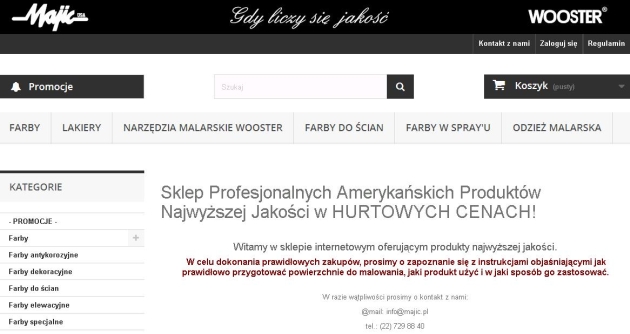 Nowa strona internetowa sklepu Majic dostępna jest pod adresem www.sklep.majic.pl. Zapraszamy do wizyty oraz zakupu farb Majic w atrakcyjnych hurtowych cenach!
