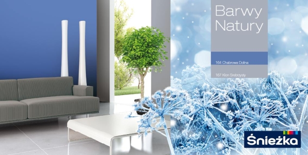 Mroźna zima prócz bieli kojarzy się oczywiście z różnymi wariantami niebieskiego. Błękit króluje na niebie w pogodny dzień, powleka cienką warstewką lodu drogi, budynki, drzewa, maluje wzory na szybach… Aby przenieść ten kolorystyczny klimat do swego mieszkania, należy wybrać odcień Chabrowa Dolina. A dla równowagi – odrobina nieco cieplejszego Klonu Srebrzystego.
