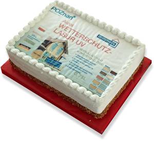 Zwieńczeniem spotkania była słodka niespodzianka od Urzędu Miasta – tort przyozdobiony grafiką jednego z produktów firmy Remmers.
